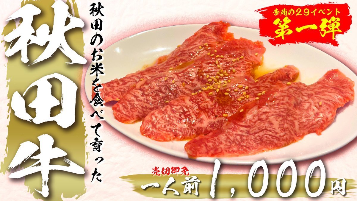 🎉秋田牛カルビ・・・2,480円→1,000円(税込)